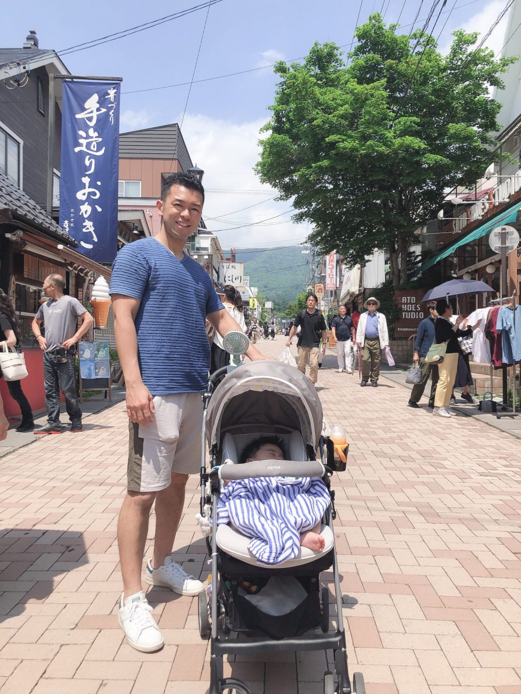 旧軽井沢銀座で食べ歩き、アウトレットの芝生でショルダープレスを…….